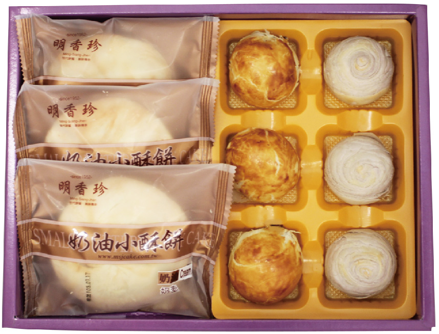 原是大甲地區的訂婚喜餅,經本店於二十多年精心研製,以天然奶油取代豬油,造就了今日的『奶油酥餅』,餡餅用純正麥芽製成麥芽糖,酥軟透心,口感貼實,香而不膩,令人難以抗拒的美味,連速食者亦可食用,是送禮自食的上上品。