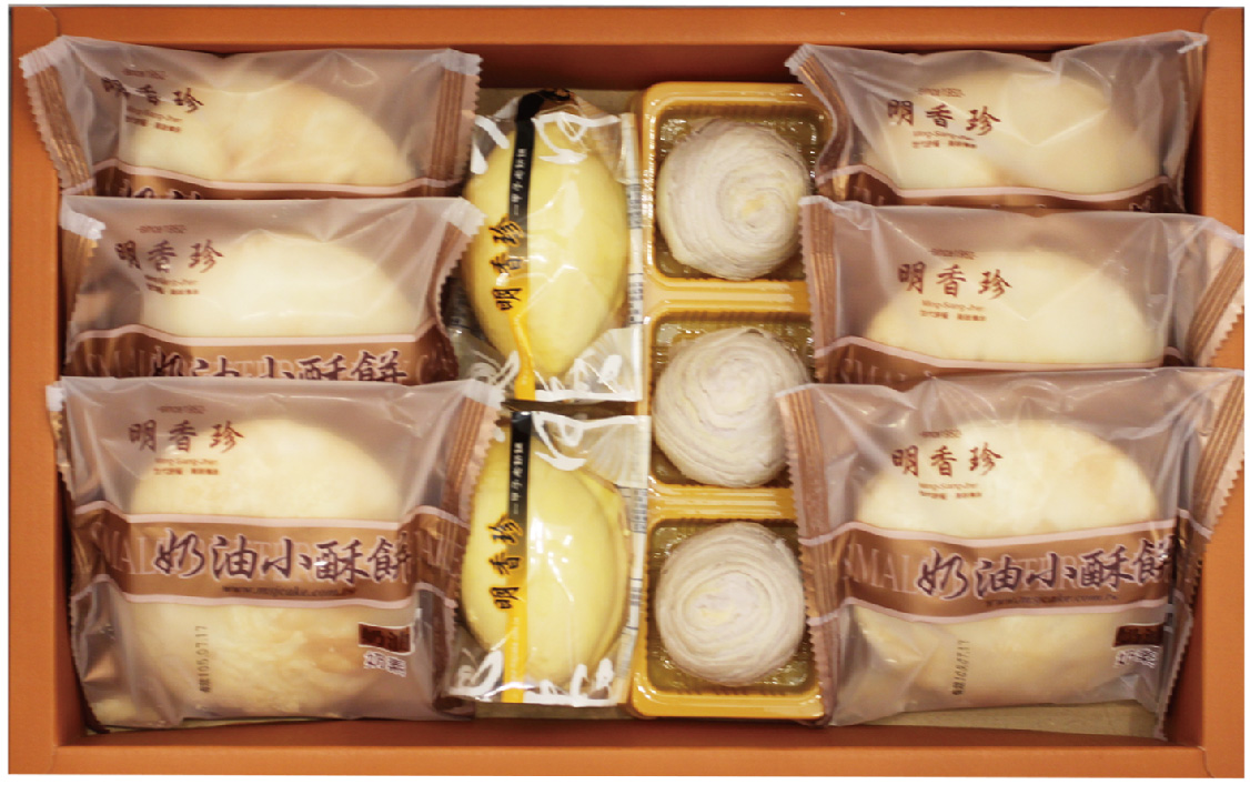 原是大甲地區的訂婚喜餅,經本店於二十多年精心研製,以天然奶油取代豬油,造就了今日的『奶油酥餅』,餡餅用純正麥芽製成麥芽糖,酥軟透心,口感貼實,香而不膩,令人難以抗拒的美味,連速食者亦可食用,是送禮自食的上上品。
